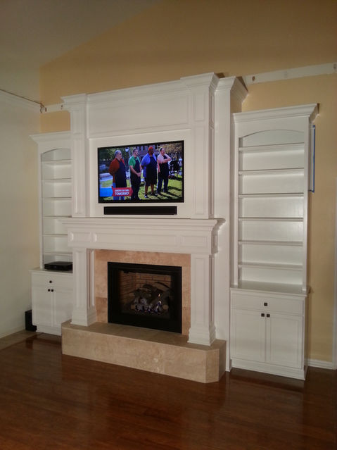 This project turned a simple wall into a fully customized living room centerpiece. We began by securely mounting the TV and concealing all wiring behind the wall for a clean, streamlined appearance—no cords or clutter in sight.